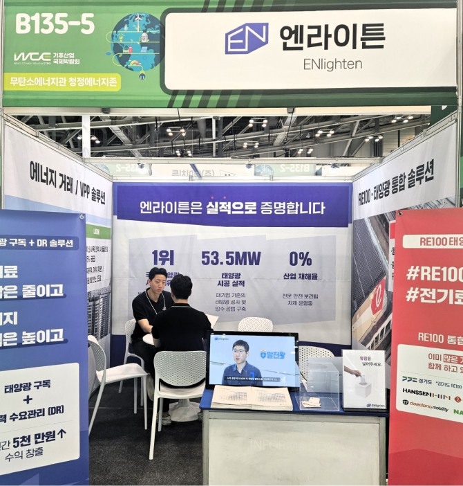 엔라이튼은 박람회 기간 동안 RE100 이행 기업, 시공사, 사업주 등을 대상으로 자사의 핵심 사업인 태양광 구독 상품, 지붕태양광 팩토링 상품, 그리고 발전소 자산관리 플랫폼 ‘발전왕’을 집중적으로 소개할 계획이다.