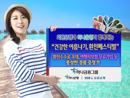 환전페스티벌는 하나은행과 외환은행의 공항영업점을 제외한 전영업점에서 환전하는 모든 개인고객을 대상으로 실시되며 외환은행은 사이버 환전 이용 고객도 포함된다. 하나은행과 외환은행은 환전금액에 따라 주요통화(USD,EUR,JPY) 최대 70%, 기타통화 최대 50%의 환율우대와 여행자보험 무료가입 서비스를 제공한다. 아울러 하나은행은 송금고객에게도 동일한 환율우대를 제공하는 송금페스티벌도 함께 실시한다. 하나은행과 외환은행은 미화 5백불 상당액 이상 환전하는 모든 고객을 대상으로 추첨을 통해 아이패드 미니, 외식 상품권, 현금처럼 사용할 수 있는 은행 포인트 등 푸짐한 경품을 증정하는 대 고객 감사이벤트도 실시한다. 양행은 이 외에도 여행 성수기인 여름철을 맞아 가족, 단체 해외여행객 및 유학생, 어학연수 등으로 해외출국을 예정하고 있는 고객에게 실질적인 혜택을 제공하고자 다양한 서비스를 추가로 준비했다. 먼저 하나은행은 하나SK카드 결제시 할인 혜택을 받을 수 있는 신라면세점 할인쿠폰을 제공하며 하나금융그룹의 ‘건강한 금융’을 컨셉으로 ‘건강라이프(헬스, 수영, 요가 등 건강 관련 수강증 제시)’, ‘건강트래블(항공권, 호텔등 여행 관련 예약증 제시)’, ‘건강페스티벌(하나은행 발행 환율우대 쿠폰 제시)’의 세 가지 항목 중 하나 이상 조건 충족시 최대 70%까지 환율우대를 제공하는 ‘건강서비스 이벤트’를 진행한다. 외환은행도 행사기간 중 환전하는 고객에게 SK 국제전화 00700 무료이용권을 선착순으로 지급한다. 미화 5백불 상당액 이상 환전하는 고객에게는 롯데면세점 할인쿠폰, 베니건스 음식 무료 쿠폰, 인천국제공항 내 서점 할인쿠폰, 환율우대 쿠폰 등 해외여행객에게 꼭 필요한 혜택으로 구성된 쿠폰북을 별도로 증정한다. 하나은행 및 외환은행 관계자는 “환전페스티벌 양행 공동 개최를 기념해 하나은행과 외환은행이 환전고객을 위해 환율우대 혜택을 포함하여 고객에게 도움이 되는 행사를 정성껏 준비했다”며“해외여행객과 유학생 등 환전고객의 많은 관심과 이용을 부탁드린다”고 말했다.