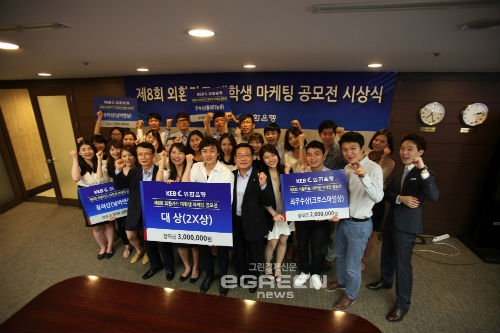 이미지 확대보기외환은행은 대상을 포함하여 총10개 팀을 선정하였고 1000만원의 장학금 및 상장을 수여했다. 이날 대상인 `2X` 상(300만원의 장학금과 상장)의 영예는 세심한 라이프 스타일 분석과 소비 패턴을 접목해 한층 업그레이드된 윙고카드 기획안을 제출한 `유&안디븐 잡스`팀이 차지했으며 `크로스마일상`(장학금 200만원 및 상장)은 고객의 다양한 니즈를 충실히 반영한 새로운 개념의 F(X)카드를 제안한 `조민중` 팀에게 돌아갔다. 이외에도 ‘플래티늄상’ 2개 팀, ‘넘버앤상’ 6개 팀 등 총 10개 팀이 이번 제8회 외환카드 대학생 마케팅 공모전 수상의 영예를 안았다. 한편 외환카드 대학생 마케팅 공모전은 2003년부터 올해까지 총 8회에 걸쳐 실시돼 왔다. 외환은행 카드마케팅을 총괄하고 있는 권혁승 본부장은 “매년 실시되는 마케팅 공모전을 통해 대학생들의 신선하고 톡톡튀는 아이디어를 많이 접하게 된다”며 “이번 공모전에서도 실제 현업에서 즉시 적용가능한 훌륭한 기획안을 많이 만날 수 있어 참가자 전원에게 다시 한번 깊은 감사의 말씀을 전한다”고 밝혔다.