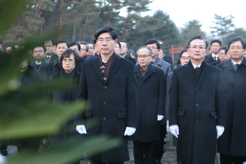 이미지 확대보기이날은 우리은행 창립 116주년으로 대한천일은행의 은행장을 역임한 영친왕의 묘소 참배로 이광구 은행장 및 임직원 70명이 새해 공식 일정을 시작했다.