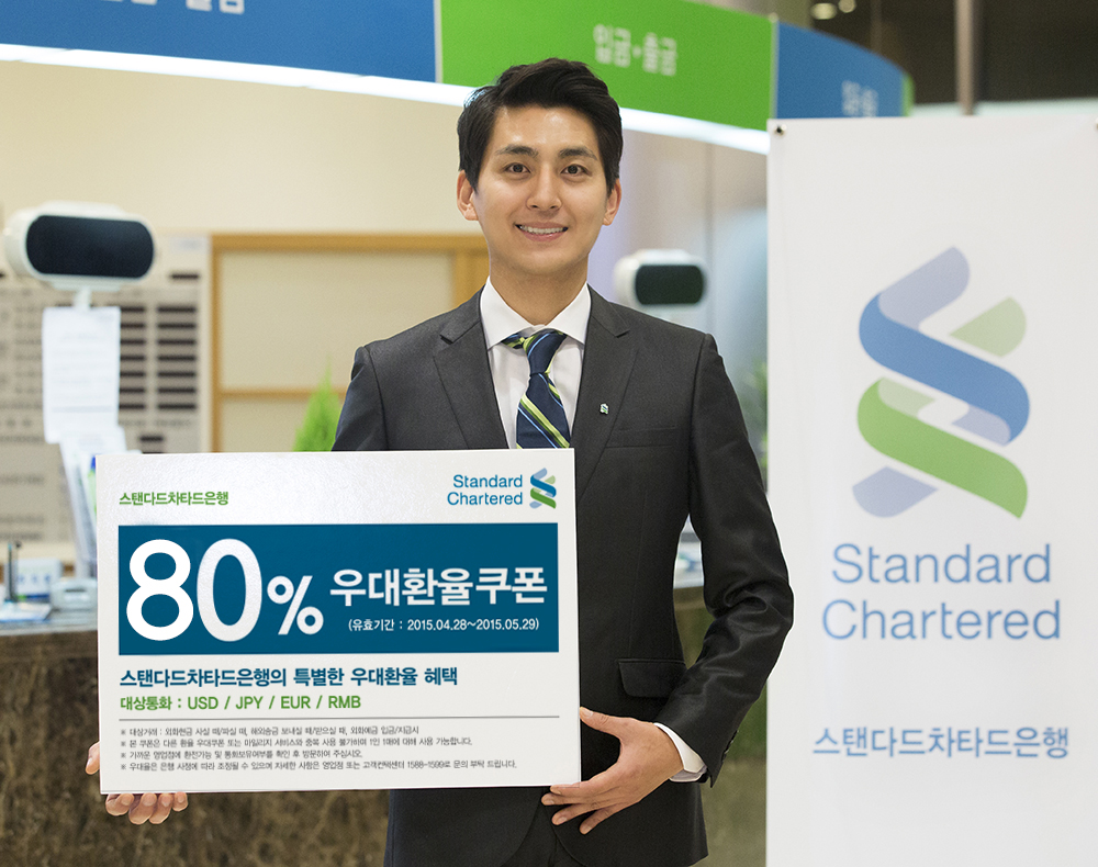 이미지 확대보기고객은 4월 28일부터 5월 29일 기간 안에 스탠다드차타드은행 공식 페이스북 팬페이지에서 환율 우대 쿠폰을 받아 스탠다드차타드은행 영업점에 제시하면 최대 80%의 환율 우대를 받을 수 있다.
