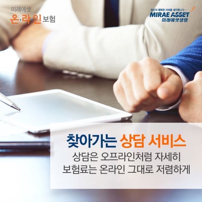 ‘찾아가는 상담 서비스’ 신청은 미래에셋 온라인보험 홈페이지 상의 방문상담 페이지에서 상담 희망일, 지역, 해당 상품명 등을 입력하면 마무리 된다. 이어 신청이 접수되면 해당 지역 담당 FC로부터 연락이 오고 상담일정을 정해야 한다.