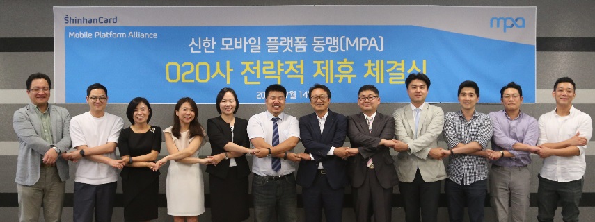 이미지 확대보기신한카드는 지난 14일 서울 중구 신한카드 본사에서 국내를 대표하는 O2O 기업들과 ‘신한 모바일 플랫폼 동맹(MPA) O2O사 전략적 제휴 체결식’을 맺었다고 15일 밝혔다.
