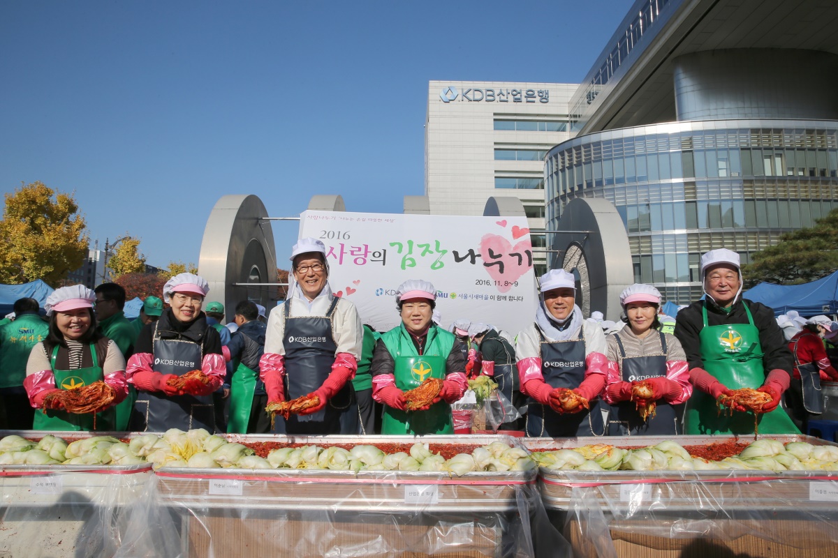 산업은행은 지난 2008년부터 매년 서울시 새마을회와 공동으로 김장용 배추, 고춧가루 등 우리 농산물을 산지에서 직접 구입하고, 손수 담근 김장을 도움이 필요한 이웃들에게 전달하는 행사를 진행하고 있다.