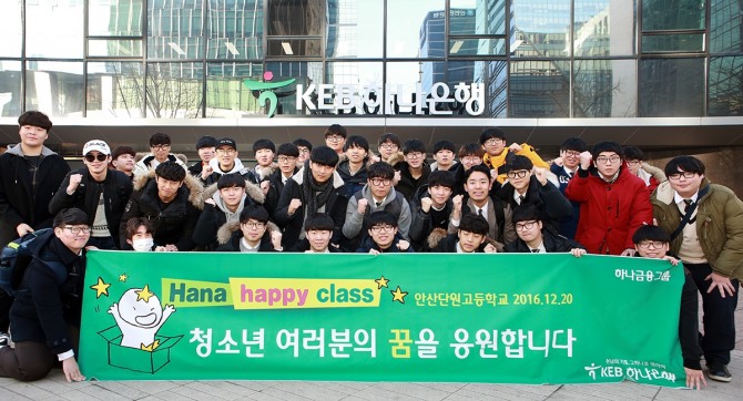 KEB하나은행 사회공헌문화부 관계자는 "다문화, 탈북 새터민 및 형편이 어려운 청소년들의 교육, 문화 격차 해소를 통한 사회통합과 청소년 문제 해결을 위해 노력 중이다"며 "이를 위해 청소년 지원사업 브랜드인 'Hana Happy Class'를 더욱 활성화 하겠다"고 밝혔다.