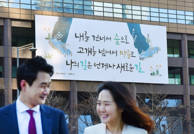 봄 옷 갈아입은 광화문글판… “나의 길은 언제나 새로운 길”
