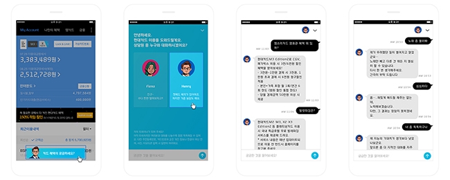 ‘현대카드 버디’는 현대카드 앱과 홈페이지를 통하면 서로 다른 개성을 가진 두 명의 챗봇이 위트 있는 상담을 진행한다. 수다스럽고 친근한 어투로 대답해주는 ‘피오나’와 예의와 매너를 중시하는 ‘헨리’가 있다. 이 두 챗봇은 현대카드와 관련된 질문뿐 아니라 ‘노래해줘’, ‘심심하다’ 등 일상적인 이야기도 나눌 수 있다.
