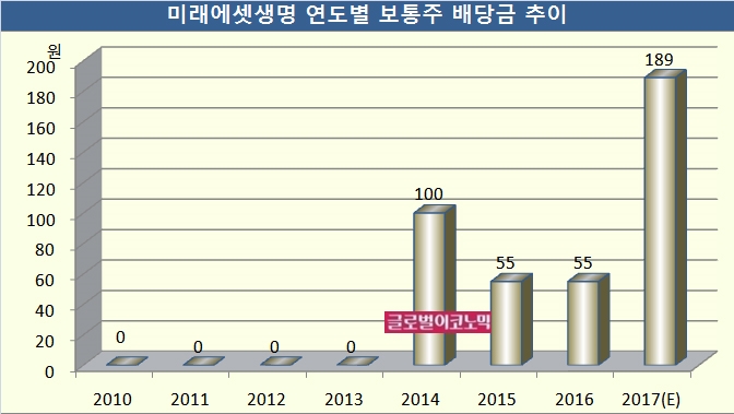 미래에셋생명은 우선주에 대해선 유상증자 계약에 따라 배당률 연 5%를 의무적으로 지급하고 있다.