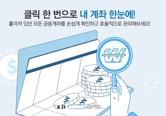 고객이 계좌통합관리서비스 홈페이지 및 은행창구를 통해 모든 은행에 개설된 본인명의 계좌정보를 일괄 조회할 수 있다.