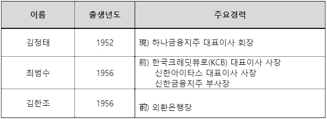 이미지 확대보기회추위는 "내부 후보는 김정태, 외부 후보는 최범수·김한조로 압축돼 유효 경쟁하게 됐다"고 밝혔다.