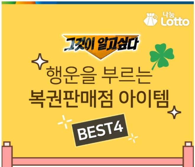 이미지 확대보기나눔로또는 13일 공식 블로그를 통해 ‘그것이 알고싶다 복권 판매점의 행운의 아이템 BEST4’를 공개했다.