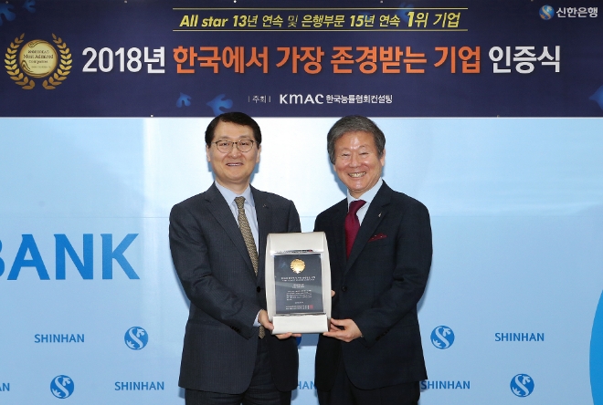 신한은행은 다양하고 혁신적인 경영 활동을 통해 국내 금융기관 중 최고의 성과를 창출하고 있을 뿐만 아니라 금융업의 본질을 살린 사회공헌활동을 지향하고, 소비자보호·서민금융·협력사동반성장 등 다양한 분야에서 차별화된 사회책임경영을 선도적으로 실천하고 노력한 점을 인정받아 선정됐다.