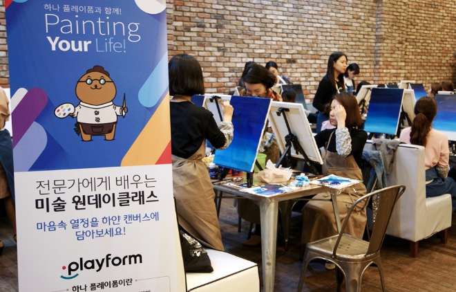 하나플레이폼은 다양한 시간대에 강좌가 열린다. 2시간 안에 나만의 작품을 완성할 수 있어 직장인, 학생, 주부들에게 추천 1순위 소확행(소소하지만 확실한 행복)으로 자리 잡아가고 있다고 있다는 설명이다.