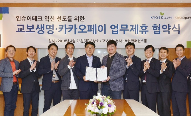 교보생명은 보험업계 최초로 카카오페이와 포괄적 업무협약(MOU)을 체결했다.
