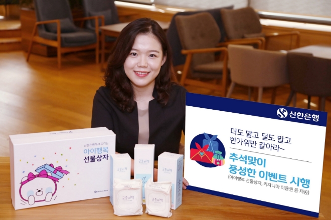이미지 확대보기신한은행은 아이행복 바우처를 발급하고 ‘신한 아이행복적금’ 또는 ‘청약종합저축’을 가입한 이벤트 참여 고객 중 300명을 추첨해 ‘아이행복 선물상자’를 제공한다. ‘아이행복 선물상자’는 육아에 필요한 로션, 오일, 샴푸 등 생활용품으로 구성되어 있으며 응모는 아이행복 패밀리클럽 이벤트 홈페이지에서 할 수 있다.