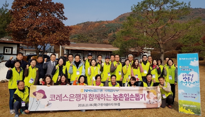 [글로벌이코노믹 석지헌 기자] NH농협은행은 6일 코레스은행 임직원을 초청해 경기도 가평 아홉마지기 마을에서 농촌일손돕기를 진행했다.