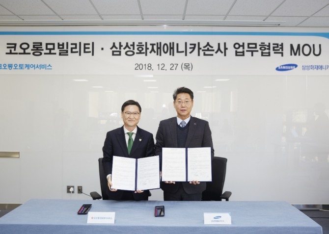 이미지 확대보기삼성화재애니카손사는 경기도 일산에 위치한 삼성화재 글로벌캠퍼스에서 코오롱오토케어서비스와 업무협약(MOU)을 체결했다고 27일 밝혔다.
