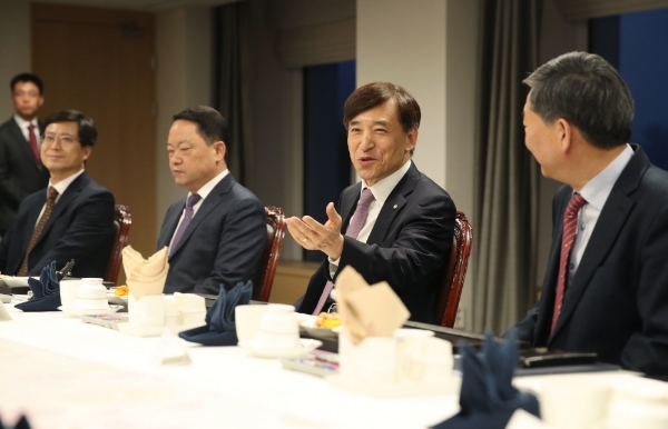 이미지 확대보기이 총재는 19일 서울 중구 한은 본관에서 열린 경제 동향 간담회에서 "제조업을 둘러싼 경쟁환경이 더욱 치열해지고 있다"며 이같이 말했다.