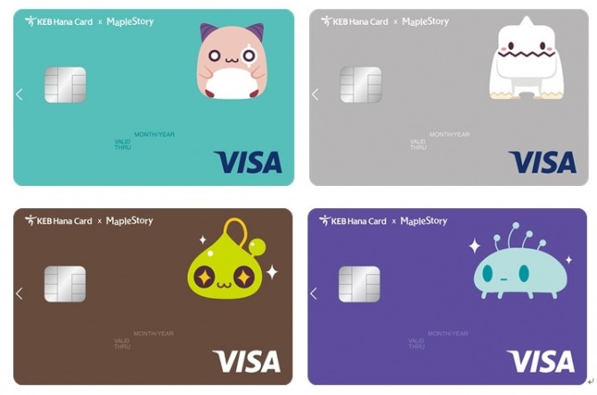 이미지 확대보기21일 하나카드에 따르면 핑크빈, 예티, 슬라임, 돌의정령 등 메이플스토리의 캐릭터가 새겨진 넥슨 메이플스토리 체크카드는 온라인사이트와 넥슨닷컴, 메이플스토리에서 넥슨 캐시를 충전할 경우 충전 금액의 15%를 월 3회까지 넥슨 캐시로 돌려준다.