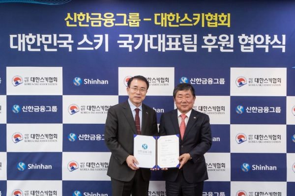 신한금융은 지난 2015년부터 대한스키협회의 공식 후원사로 대한민국 설상 종목(알파인 스키, 크로스컨트리, 스키점프, 스노보드, 프리스타일, 노르딕복합) 국가대표 선수 50여명의 경기력 향상을 위해 다양한 지원을 이어오고 있다.