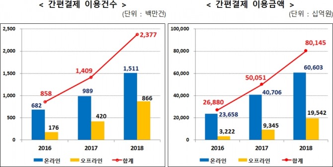 시장 80% 차지…간편결제 규모·이용건수·금액 급증