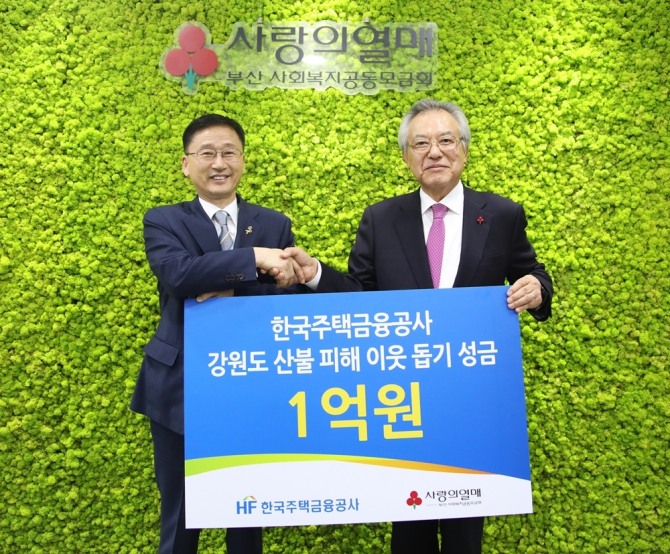이정환 주택금융공사 사장은 “대형 산불로 인해 삶의 터전을 잃은 이재민이 하루 빨리 일상으로 복귀하길 바란다”며 “앞으로도 따뜻한 나눔 문화 확산을 위해 더욱 노력하겠다”고 말했다.