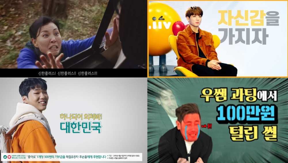 피겨스케이팅 선수 김연아, 아이오아이는 물론 최근 방탄소년단까지 국민은행 유튜브 채널에는 이들이 출연한 광고와 이벤트 영상까지 다양하게 시청할 수 있다.
