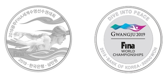 이미지 확대보기한은이 발행할 이번 기념주화는 모두 2종으로 2019광주FINA세계수영선수권대회 은화 3만원화 1종, 제100회 전국체육대회 은화 3만원화 1종이다.