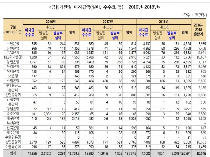 또 미지급 수수료는 2016년 118억5600만 원, 2017년 158억9000만 원, 2018년 420 억으로 증가하는 추세를 나타냈다.
