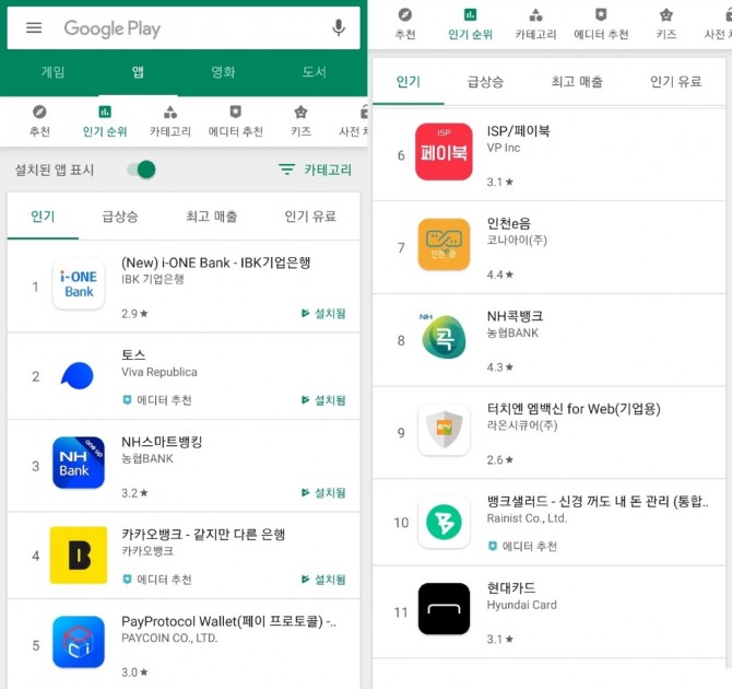 안드로이드 인기 앱 순위는 다운로드 수, 사용자 수, 별점 등을 포함해 다양한 기준을 종합해 판단하는 것으로 알려져 있으며 조회 시점에 따라 순위는 변동될 수 있다.