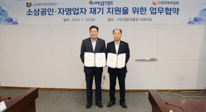 이 원장은 "이번 협약을 계기로 소상공인·자영업자들이 취업·금융·채무조정 등 각 기관의 서비스 접근성이 향상될 것으로 기대된다"고 덧붙였다.