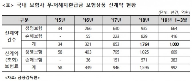 무해지 또는 저해지 보험이란 보험료 납입기간 중에 계약을 해지하면 해약환급금이 없거나 적은 대신 보험료가 저렴한 상품이다. 금융감독원 자료에 따르면 지난해 176만 건, 올해 1분기에만 108만 건이 팔릴 정도로 판매가 급증하고 있다.