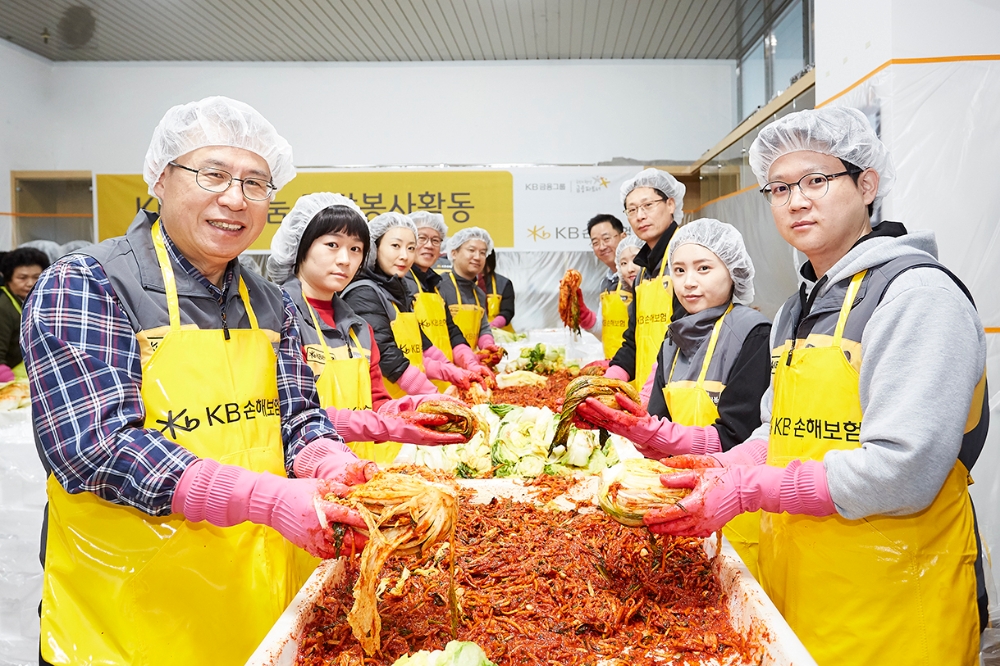 KB손해보험은 26일 양종희 사장을 비롯한 임직원 50여 명이 서울 역삼동 강남문화원 굿잡자립생활센터에서 ‘2019 KB희망나눔 김장 봉사활동'을 가졌다.