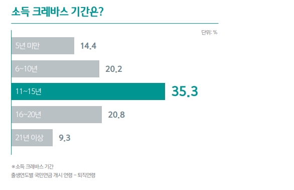 이에 비해 국민연금 받는 시기는 현재 62세에서 2034년까지 65세로 늦춰질 예정이어서 크레바스 사이의 틈은 오히려 더 벌어지는 상황이다.