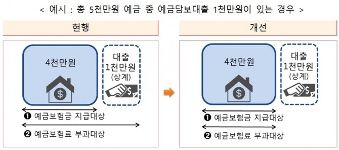 원래 5000만 원을 예금한 고객이 1000만 원의 예금담보대출을 받은 경우에도 5000만 원 전체에 대해 예금보험료를 부과했는데 앞으로는 부과 대상이 4000만 원으로 줄어든다.