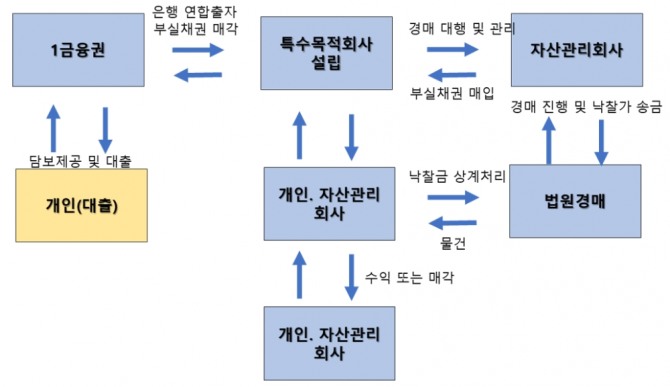 이미지 확대보기금융기관의 담보부NPL 매입관리를 전문으로 하는 자산관리 회사인 엔피엘코리아자산관리에 따르면, "금융기관은 이렇게 발생한 부실채권을 관리하기 위해 선제적 조치를 취하는데 필연적으로 강제집행(경매,공매또는 압류등) 조치를 취하거나 매각(loan sale)을 서두르게 된다"고 설명했다.