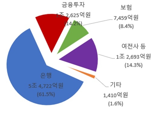 금융지주회사의 당기순이익 은 자회사 중 은행권역이 가장 많은 비중을 차지하고 있다. 자료=금융감독원이미지 확대보기