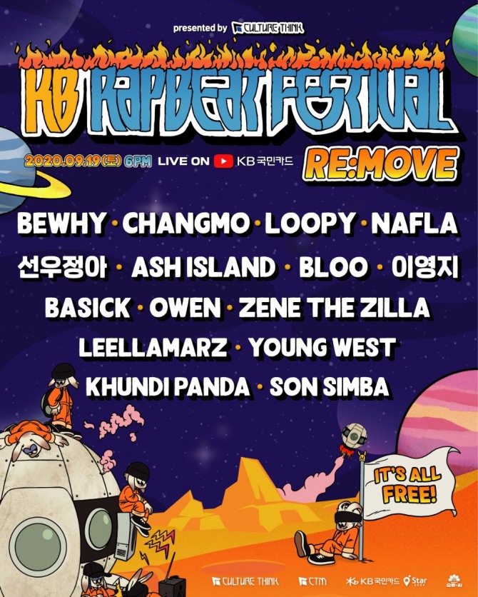 오는 19일 저녁 6시부터 KB국민카드 공식 유튜브 계정을 통해 무료 관람 가능한 이번 공연에는 비와이, 창모, 루피, 이영지 등 16명의 국내 정상급 음악가들이 출연해 수준 높고 다양한 힙합 음악을 선보일 예정이다.