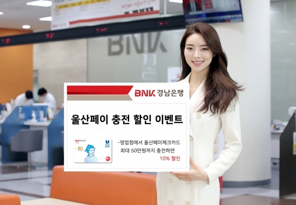 이미지 확대보기오는 2월 28일까지 진행되는 이번 이벤트 기간에 경남은행 영업점에서 울산페이 일반 또는 다자녀 체크카드를 최대 50만 원까지 충전하면 10% 할인해 준다.