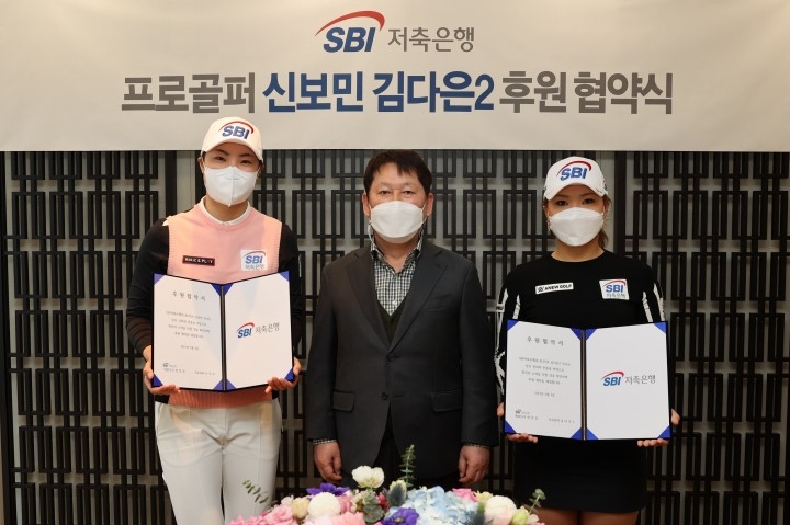 SBI저축은행이 프로골퍼 신보민, 김다은2와 2021시즌 후원 계약을 맺는 협약식을 가졌다고 4일 밝혔다.