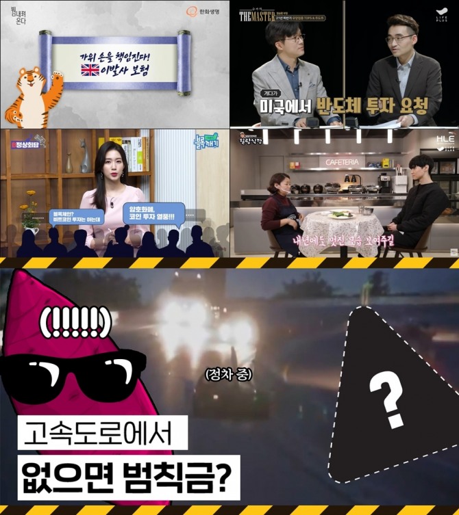 먼저 ‘한화생명’ 유튜브 채널에서는 ‘외계인 납치 보상 보험’, ‘먹방러를 위한 대식가 보험’ 등 신박한 보험 정보를 알려주는 ‘붬(보험)내려온다’ 시리즈를 주력으로 삼고 있다. 해당 시리즈는 신기한 보험들을 3분 길이의 짧은 영상에 효과적으로 전달하며 평균 조회수 10만 건 이상을 꾸준히 기록 중이다.