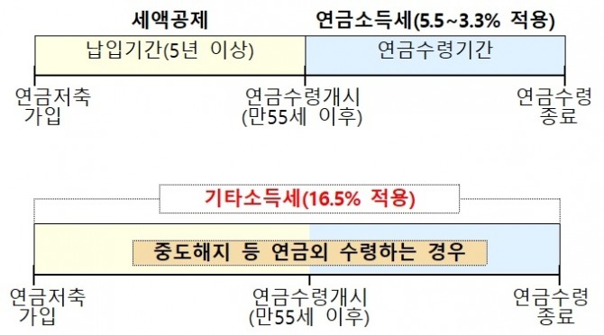 반면 연금저축을 중도 해지하는 경우 ‘세액공제를 받은 납입액+연금저축의 운용수익’에 대해 16.5%의 기타소득세가 적용돼 사실상 세제 혜택을 누리지 못하게 된다.