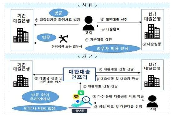 금융위원회가 금융 소비자의 대출이자 부담 경감 등을 목적으로 준비했던 대환대출 플랫폼 서비스의 연내 출시가 사실상 무산될 전망이다. 자료=금융위원회이미지 확대보기