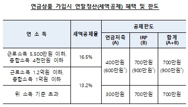 연말정산시 연금상품 세액공제 혜택은 IPR와 연금저축 합해 700만 원까지 가능