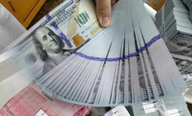 외환 딜러가 달러를 펼쳐 보인다.사진=본사DB