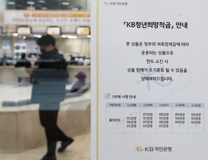 이미지 확대보기25일 은행권에 따르면 국민·신한·하나·우리·농협·기업·대구·부산·광주·제주·전북 등 11개 은행은 이날 오전 9시30분부터 1990·1995·2000년생을 대상으로 청년희망적금 신청을 받는다. 둘째 주(28일~3월 4일)부터 영업일 운영시간 중 출생연도와 관계없이 가입 가능하다. 다음달 1일의 경우 영업일이 아니어서 가입신청을 받지 않는다.