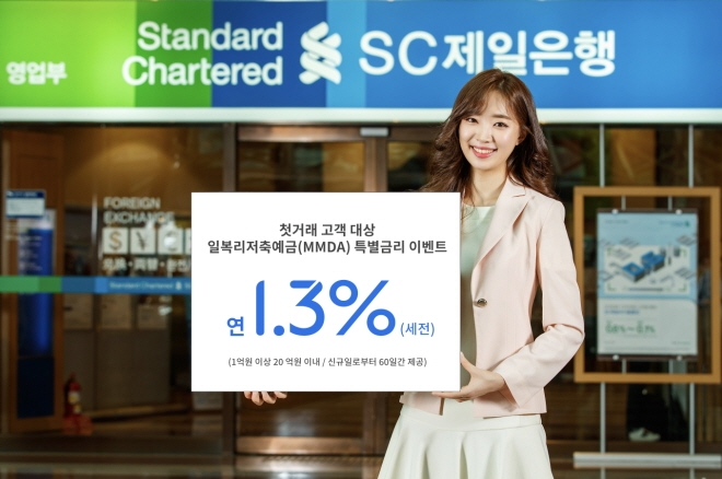 이를 통해 SC제일은행은 고객에게 신규 가입일로부터 최장 60일까지 특별금리를 제공한다. 이벤트 금리를 적용하는 개인별 가입한도는 최소 1억 원에서 최대 20억원이다. 다만 총 모집한도 2000억원이 소진되면 이벤트를 조기 종료한다.