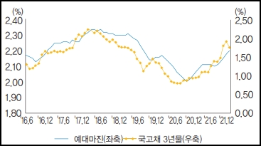 반면, 코로나19 등으로 매출 부진에 따른 기업 차주들의 신용위험 증가, 은행들의 중금리 대출 확대 등은 예대 마진 증가에 영향을 미치고 있다. 코로나19와 금리상승 등으로 국내 경제 전반에 걸쳐 어려움이 나타나는 가운데, 은행권의 예대마진이 확대가 이른바 ‘이자장사로’ 높은 이익을 달성한다는 부정적 인식을 확산 시키고 있다.