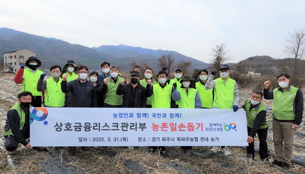 농협(회장 이성희) 상호금융리스크관리부 직원들은 31일 경기도 파주시 콩 재배농가를 방문해 영농철 일손돕기 봉사활동을 실시하며 함께하는 농협을 실천했다.