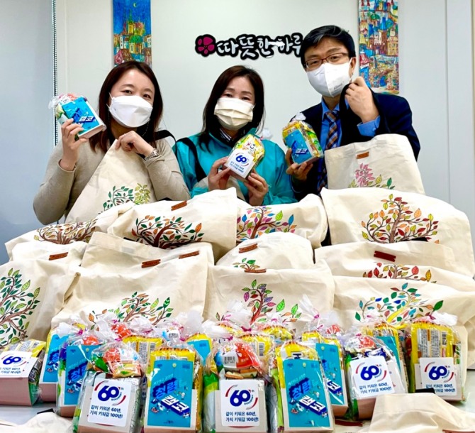 이미지 확대보기캠코 서울동부지역본부는 지난 2일 '사랑나눔 에코백&간식꾸러미' 120개를 사단법인 '따뜻한 하루'에 전달했다고 3일 밝혔다.